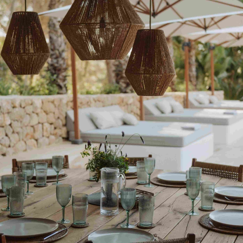 The interior spaces at Can Geco are light-filled, elegant and welcoming. Soft neutral palettes enhance the sense of openness, while individually selected vintage pieces and subtle tribal accents add warmth and character.