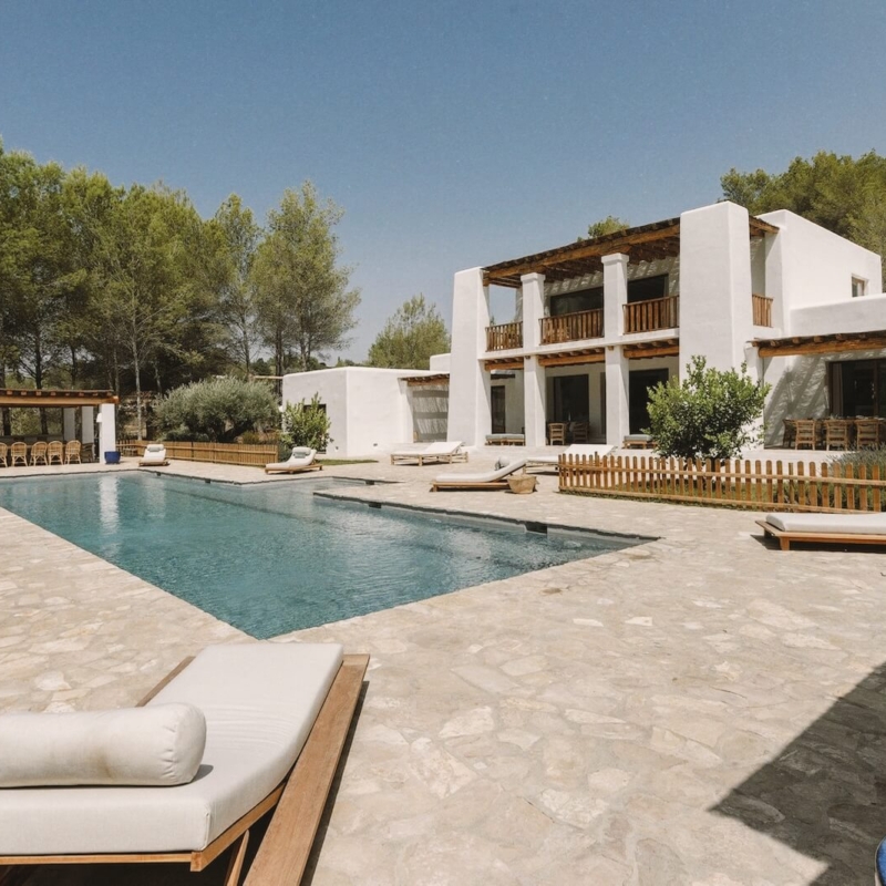 Set in tranquil, green surroundings while remaining centrally located, Can Mateus is a generously proportioned family villa designed for relaxed island living. Created by the renowned Ibiza-based studio Blakstad Design Consultants, the property blends timeless Ibizan architecture with modern comfort. Recently redecorated and refurnished to a high standard, the home feels both chic and welcoming ideal for families or groups seeking space, privacy and ease.