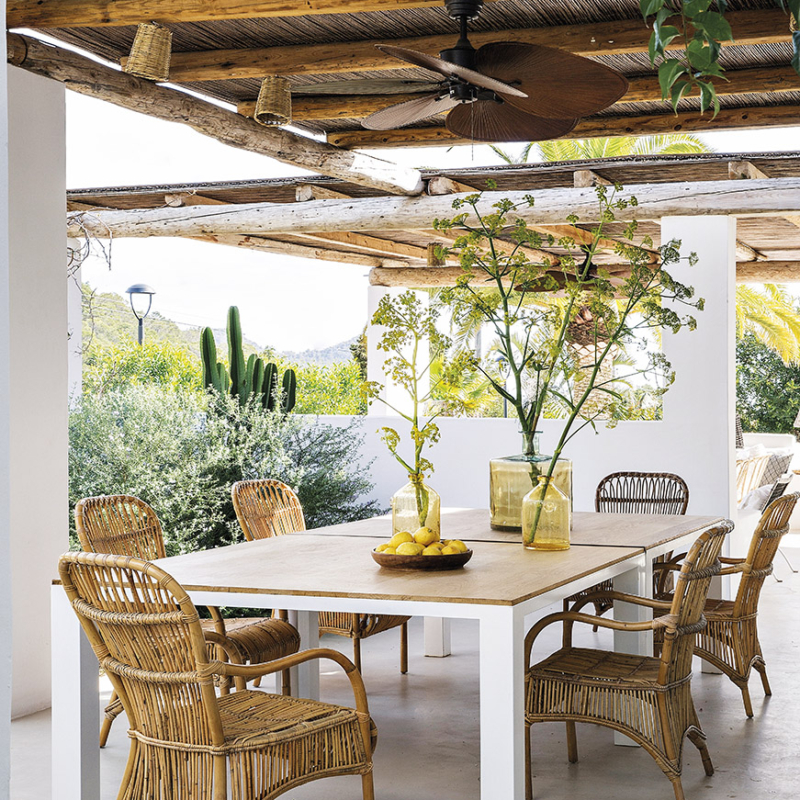 Just a short walk from the soft sands of Cala Llenya (350 m) and Cala Nova (500 m), Can Vicky is a beautifully renovated family villa where refined design, comfort and an exceptional beachside location come together effortlessly. Created by a renowned interior designer from Madrid, this elegant home blends traditional Ibizan architecture with contemporary, textured interiors and carefully curated details.