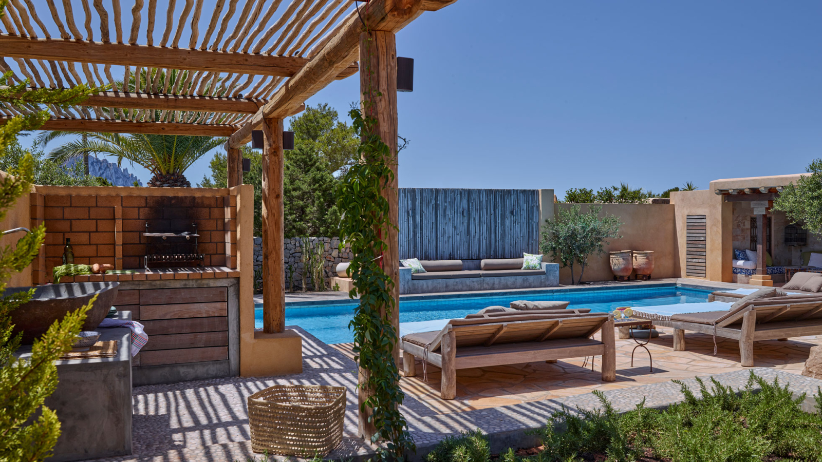 Defined by traditional Moorish-inspired architecture, Kali features sand-coloured stone façades, natural stone walls and terraces shaded by Sabina wood roofs an authentic expression of Ibiza’s heritage, refined for modern comfort.