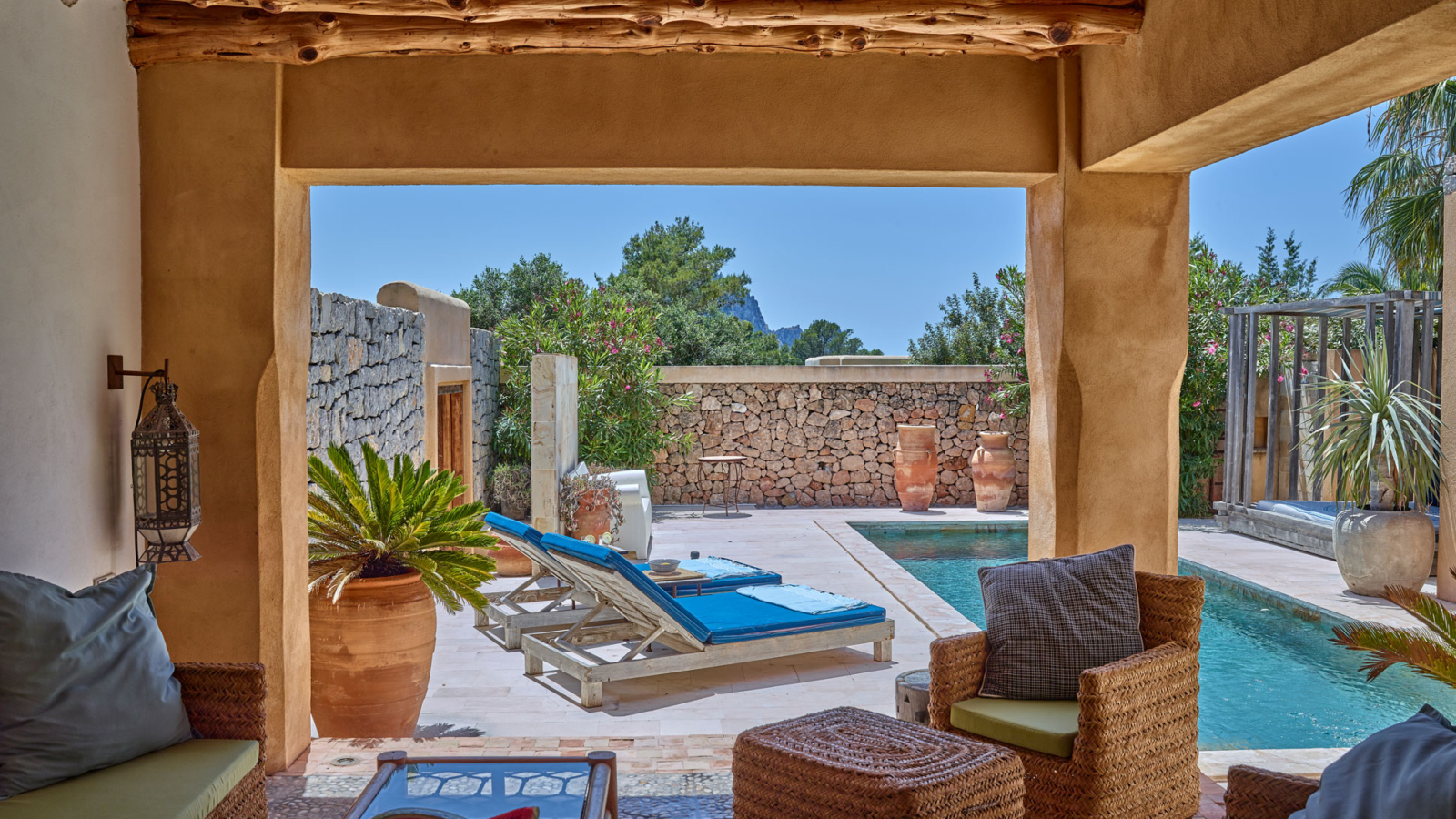 Yuca is the most intimate villa within the Kasbah collection a refined hideaway designed for couples or small families seeking privacy, atmosphere and iconic Ibiza views. Set on the island’s celebrated southwest coast, the villa enjoys legendary sunsets and uninterrupted vistas towards the mystical rock of Es Vedrà, all within walking distance of the beach.
